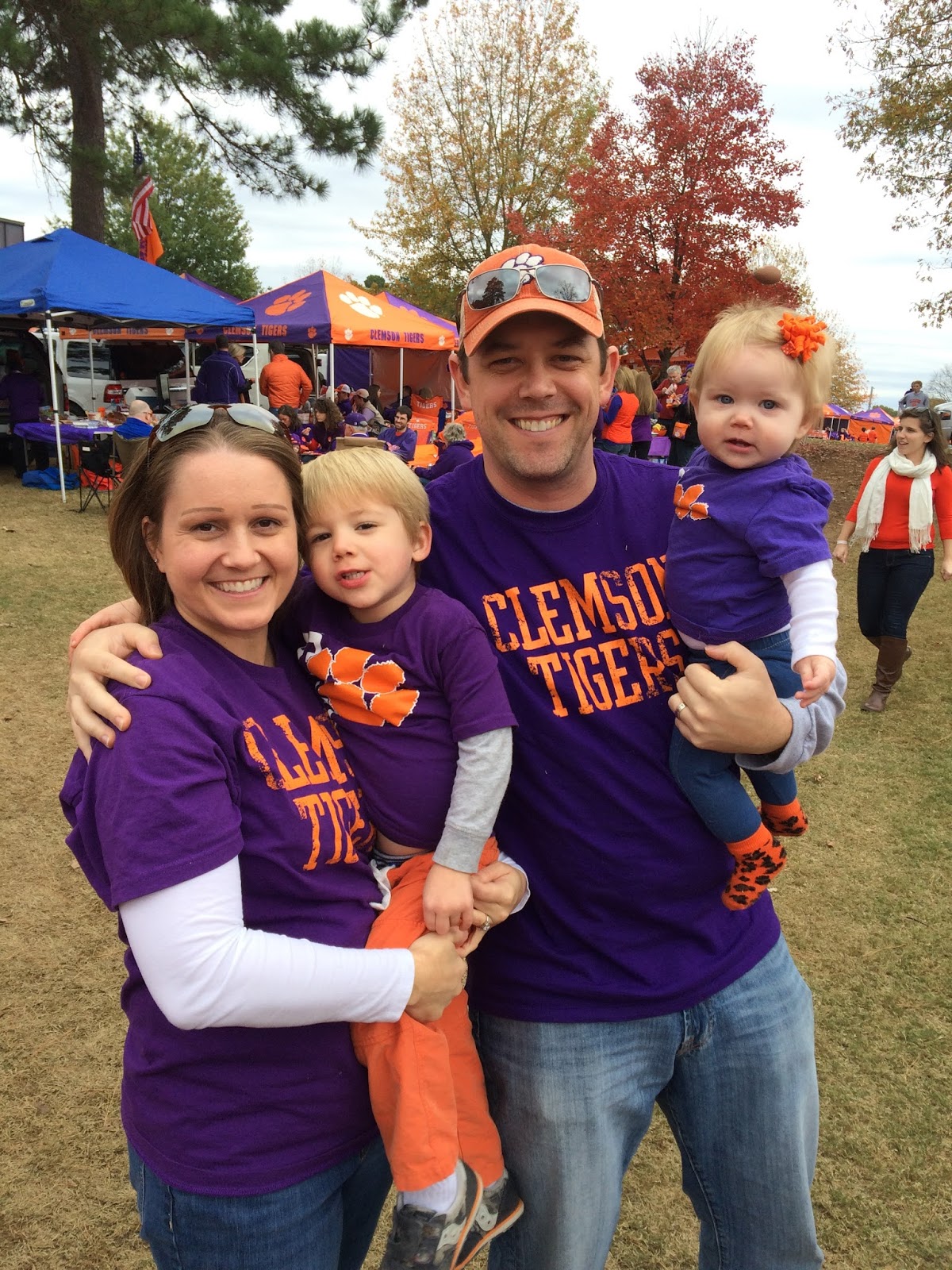 The game was a "purple out" but all of our Clemson gear was orange so we had to buy some purple shirts for the family!