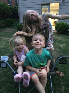 We went over to the Palmer's house to play, eat and watch a movie while the grown ups talked. The best part was that we got to watch the movie outside! But we had to wait until it started getting dark to watch it...